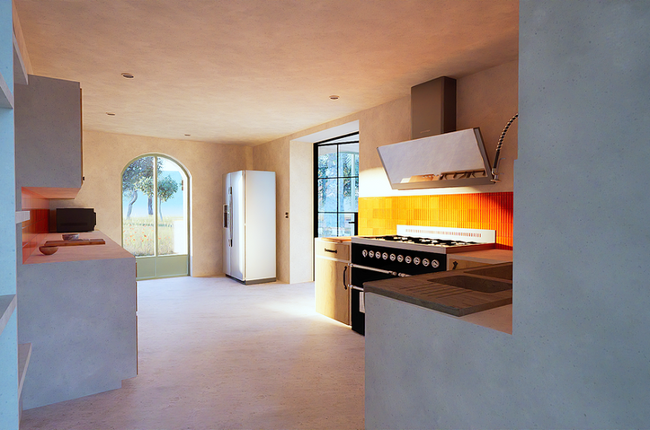 Cuisine semi-ouverte avec accès veranda