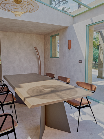 L'espace extérieure est une continuité de la maison, la terrasse en béton moderne longe la maison. Accessible depuis le salon et la cuisine elle s'installe comme une pièce supplémentaire.