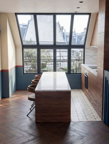 Découvrez Le Toit Vavin, un duplex avec terrasse rénové style art déco en plein coeur du 6ème arrondissement de Paris